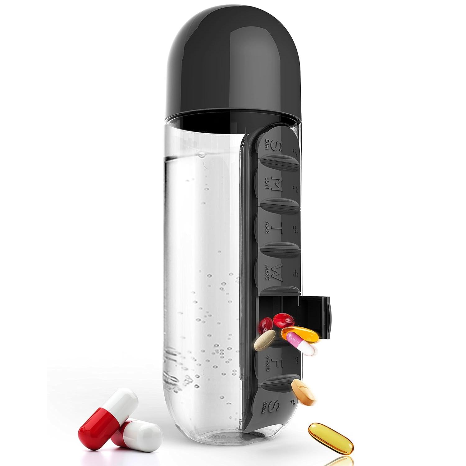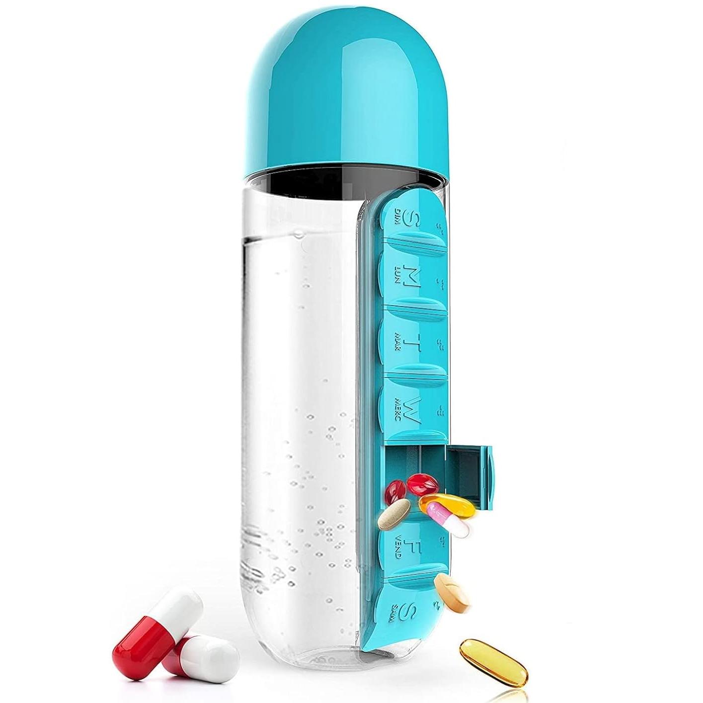 this water bottle with a built-in medicine organizer is so convenient! i never forget my pills now and it keeps me hydrated all day 😍