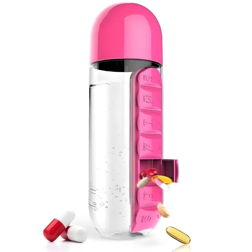 This two-in-one water bottle and medicine box has truly simplified my routine. As someone who travels frequently for work, having an all-in-one solution means fewer things to pack and worry about losing along the way The bottle itself feels sturdy yet lightweight, making it ideal for carrying around during busy days or long trips It keeps me on top of both hydration needs as well as medication schedules effortlessly