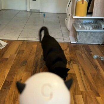 My kitten absolutely adores chasing after the moving lights from this automatic spinning laser toy – best purchase ever.