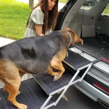 The convenience factor this product brings is unmatched; not only does it save me from lifting my heavy fur baby into the car every time we go somewhere but also makes her independent enough to climb onto our bed at home without assistance.