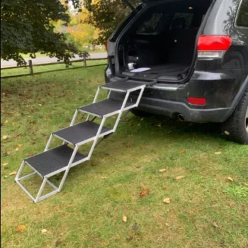The strength of this ramp is remarkable! The robust aluminum alloy frame can support dogs weighing up to 250 lbs which gives me peace of mind knowing my pet’s safety isn’t compromised.