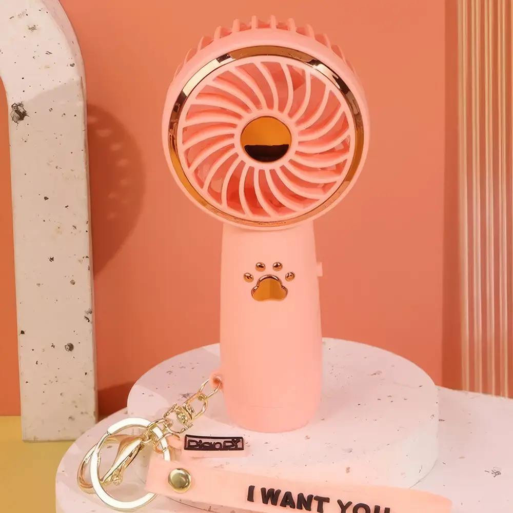 This little fan is absolutely adorable! It's perfect for those hot summer days when you're on go. I love compact it is, fitting easily into my purse. The battery life is impressive too – it lasts much longer than I expected. Highly recommend!