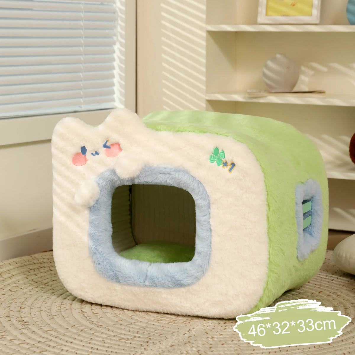Our pet house is crafted with love, using 100% cotton and soft PP cotton filling to ensure a plush environment. It’s designed to keep your pet warm and cozy during the colder months. The removable cover makes cleaning easy, so your pet’s space stays fresh all year round. The compact size and stylish design make it a seamless addition to any room, offering a snug retreat for your pet.