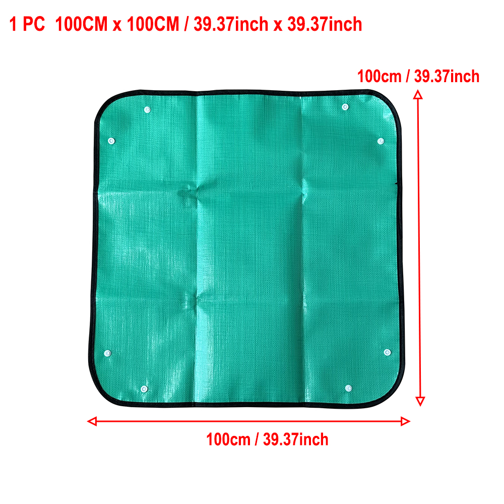 Made from high-quality PE film, our Foldable Planting Mat is not only wear-resistant but also fully waterproof. It features smartly designed edges with snaps on all four corners to securely lock and prevent spillage of water and soil. The mat’s green color blends perfectly with your garden or indoor setting, providing a size for every need – from compact 33x33cm to a generous 100x100cm.