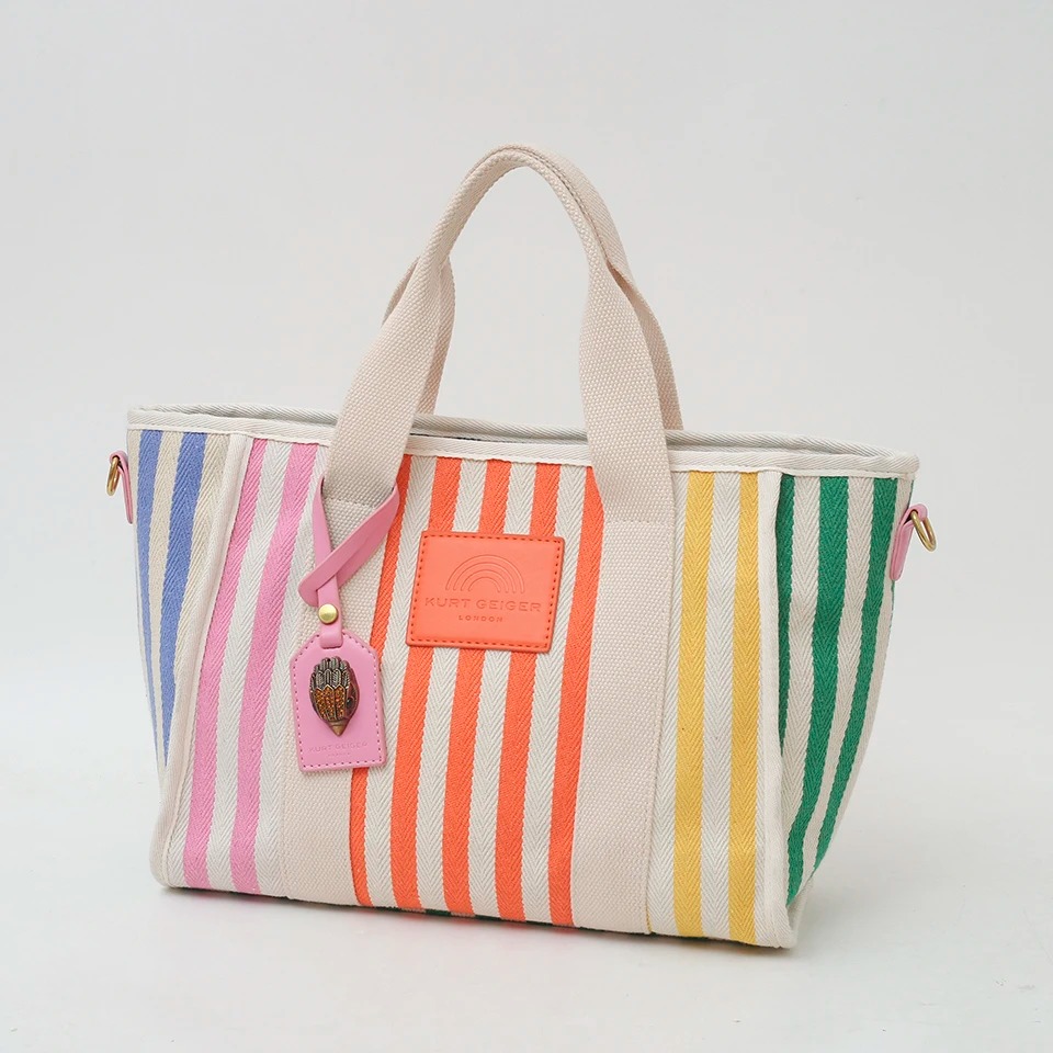 The striped canvas tote is ideal for daily use or special occasions when you need extra space without sacrificing style. Its large capacity allows you to carry all your essentials, from laptops and tablets to makeup and snacks. What sets this bag apart is its attention to detail—striking sequins that catch the light and a playful letter motif that keeps you on trend. The combination of practicality and chic design makes it not just a bag, but a statement accessory.