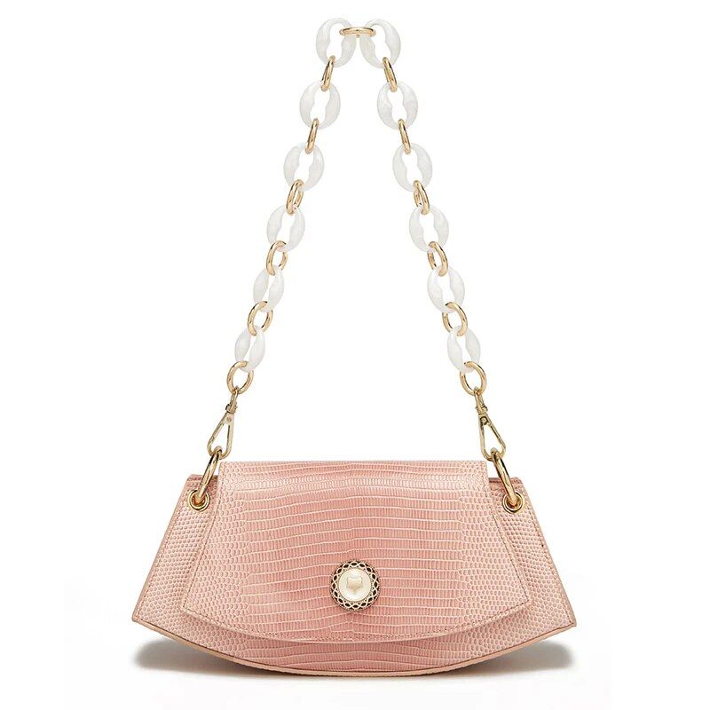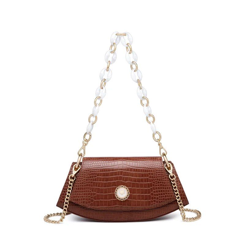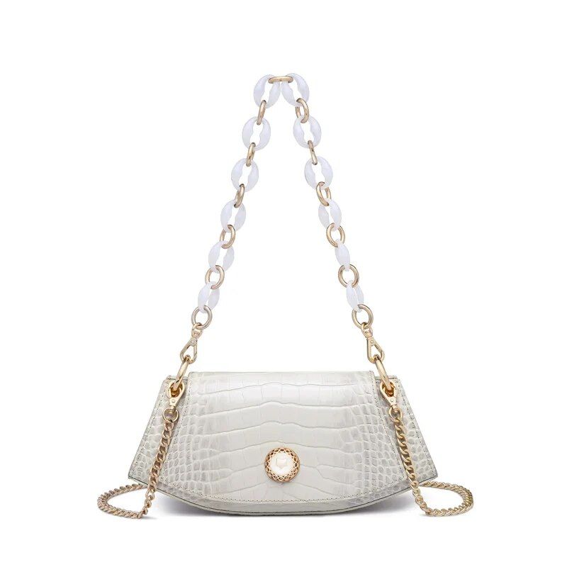 This bag isn’t just about carrying your essentials; it’s about enhancing your outfit and expressing your style. The alligator pattern imbues a sense of luxury and sophistication, while the beading and pearl decoration add a delicate touch of glamour. Its soft hardness level ensures the bag molds comfortably to your side, making it the ideal accessory for women who cherish both style and comfort.