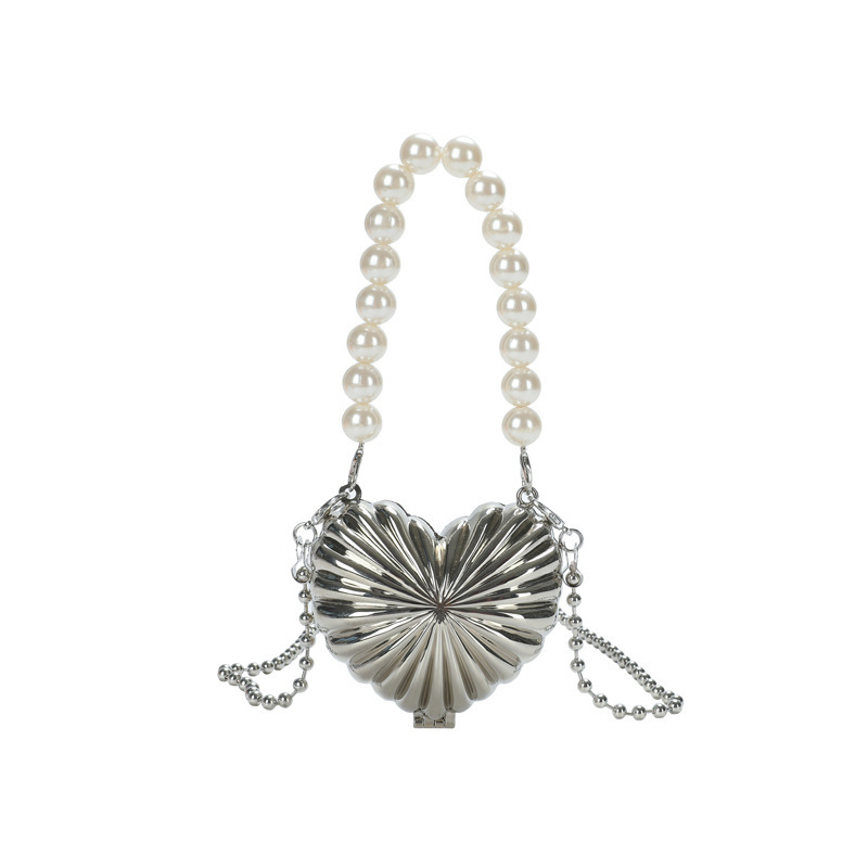 Introducing our latest obsession – the Luxury Pearl Beaded Metallic Heart Crossbody Bag. A symbol of sophistication and high fashion, this bag is designed for the modern woman who appreciates elegance in compact sizes. Crafted with an exquisite metallic finish and adorned with pearls and chains, this mini heart-shaped handbag is more than an accessory; it’s a statement.
