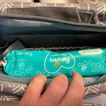 Finally found the perfect thing for quick outings to dine or run errands! I’m not a fan of dragging my big bag around when I just need a few essentials. This one fits a full pack of wipes, 5-7 diapers, a small bottle, change of clothes, burp cloth, bib, teethers, and a travel formula container effortlessly. Plus, it’s equipped with a strap and stroller clips!