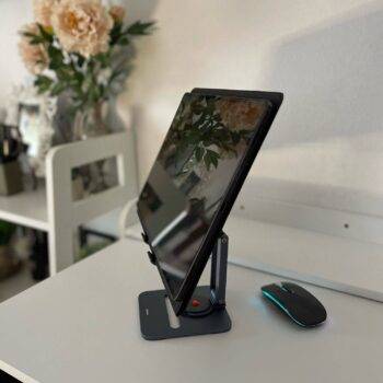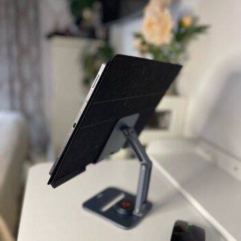 This Aluminum Tablet Stand stands out with its superior build quality, adjustable features, and 360° rotating design, making it ideal for both professional and personal use. Whether you’re working from home, watching your favorite shows, or following a recipe, this stand makes it easy to adjust your tablet to the perfect angle, all while keeping it securely in place. Its stylish space grey finish blends perfectly with modern tech setups, while the reinforced metal axes guarantee it will withstand everyday use.