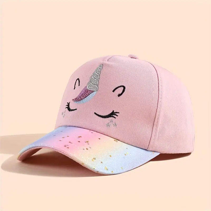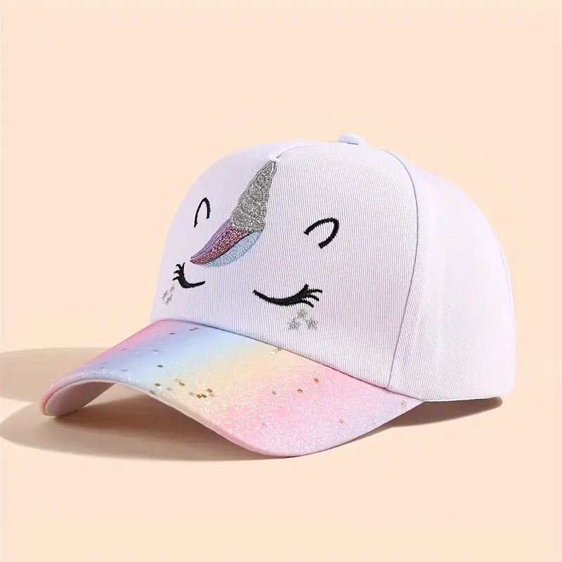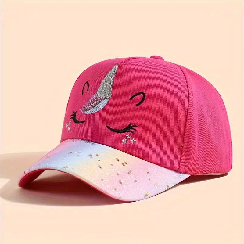🌈💖 I cannot express enough how much my one is in love with her new cap. It has quickly become a cherished possession, something she wears with pride and delight every day. The cap's design is just perfect for those bright, sunny days when we're out and about it provides ample shade to keep her comfortable while still being stylish. The standout feature of this cap that caught both our eyes was the unicorn embroidery detail. It's an adorable addition that adds a touch of whimsy and magic to the overall design, making it even more appealing to my who absolutely adores all things unicorn-themed! This small but significant detail truly enhances the aesthetic appeal of the cap, transforming it from a simple accessory into something special. Another aspect worth mentioning about this product is its snapback feature which allows easy adjustments for fit. With this handy function, I can ensure that the cap fits snugly on her head without any discomfort or risk of slipping off during active playtime sessions outdoors. This adjustable nature makes it not only practical but also versatile as she grows up.