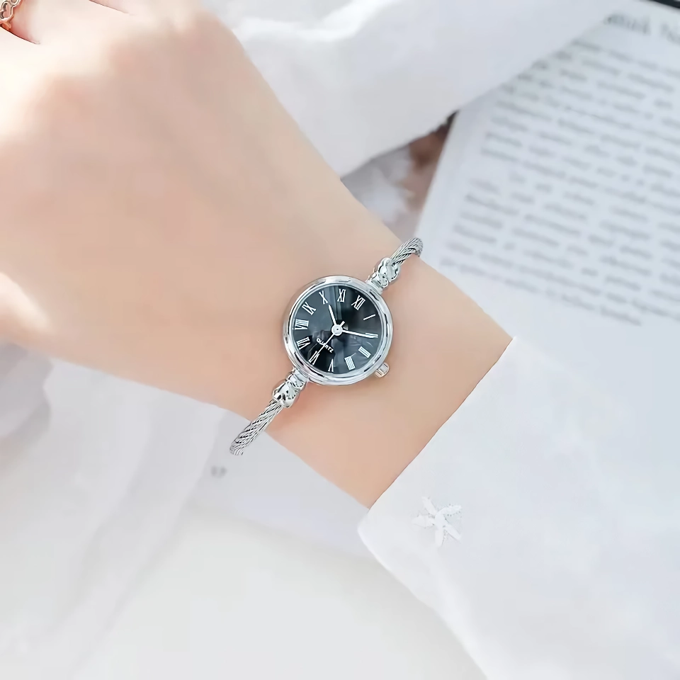 Aside from its stunning design, what sets this watch apart is its dual functionality. It’s not just a watch; it’s a piece of jewelry that enhances your outfit with its bangle-like appearance. The easy-to-wear clasp-free design means no more fumbling with tricky fastenings, making it a practical choice for the modern woman on the go.