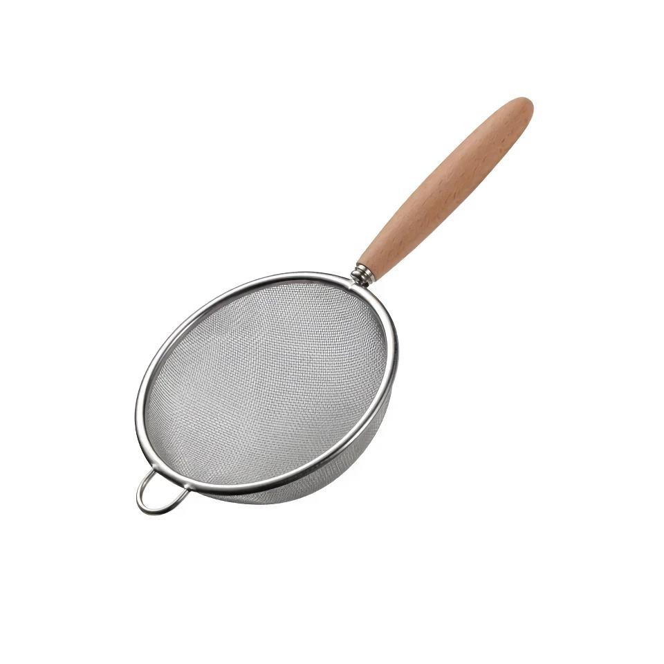 Crafted with care and precision, the Wooden Handle Stainless Steel Colander is an essential addition to any kitchen. Its fine mesh strainer, multi-function filter, and sifter capabilities will elevate your cooking and baking experience. The colander is perfect for everything from straining oil to sifting flour, ensuring your recipes have the ideal texture and consistency.